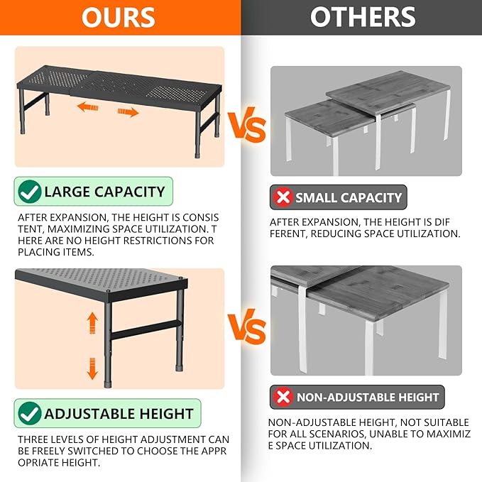 - Expandable & Stackable Cabinet Organizer:Designed as a top-tier kitchen organizers and storage solution, this product includes an adjustable pantry shelves system that allows for customization to hold various items securely, coupled with an expandable cabinet shelf that adapts to your needs, serving as an excellent spice rack organizer for cabinet and improving overall cupboard shelf organize capabilities for a tidy kitchen.