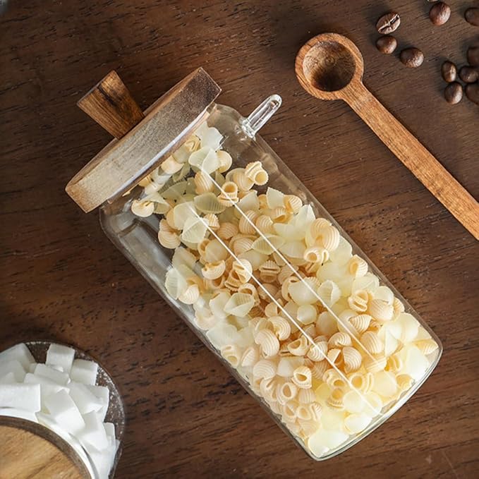 - Ideal Size for Daily Use: With dimensions of 3.54" x 7.87" (lid not included), this 34FL Oz glass jar offers ample capacity while remaining compact enough for convenient storage and portability. The wooden handle on the lid ensures comfortable and effortless opening