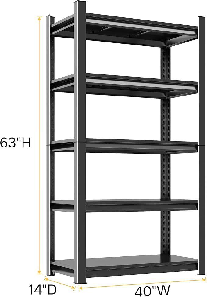63''H Garage Shelving Heavy Duty Garage Storage Shelves, 3000LBS Capacity Adjustable 5 Tier Metal Industrial Shelf Unit for Kitchen, Utility Room, Warehouse and Basement, Black (14''Dx40''Wx63''H)
