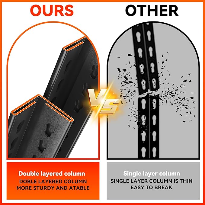 - 【Double-Layer Post Design – Protect Your Hands】Say goodbye to flimsy single-layer post shelves that scratch easily. Our double-layer post design ensures thicker, higher-quality columns while safeguarding your hands from cuts and scrapes