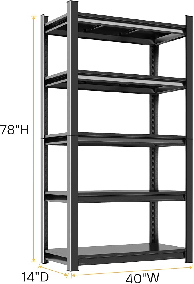 78''H Garage Storage Shelves Heavy Duty 3500 LBS Capacity Metal Garage Shelving, Adjustable 5 Tier Steel Industrial Shelving Units for Utility Room, Warehouse and Basement, Black (14''Dx40''Wx78''H)