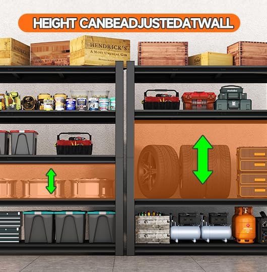 - 【Strong & Spacious – 3000 lbs Load】 Five-tier steel shelves with upgraded double-ribbed beams. Holds 600 lbs per tier without wobble. Store everything from bulk paper towels to toolboxes with confidence