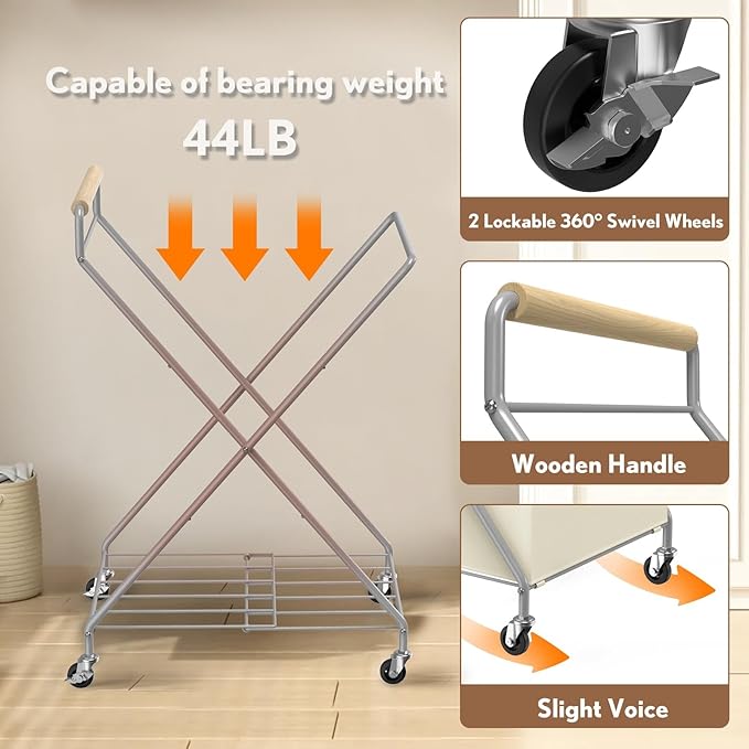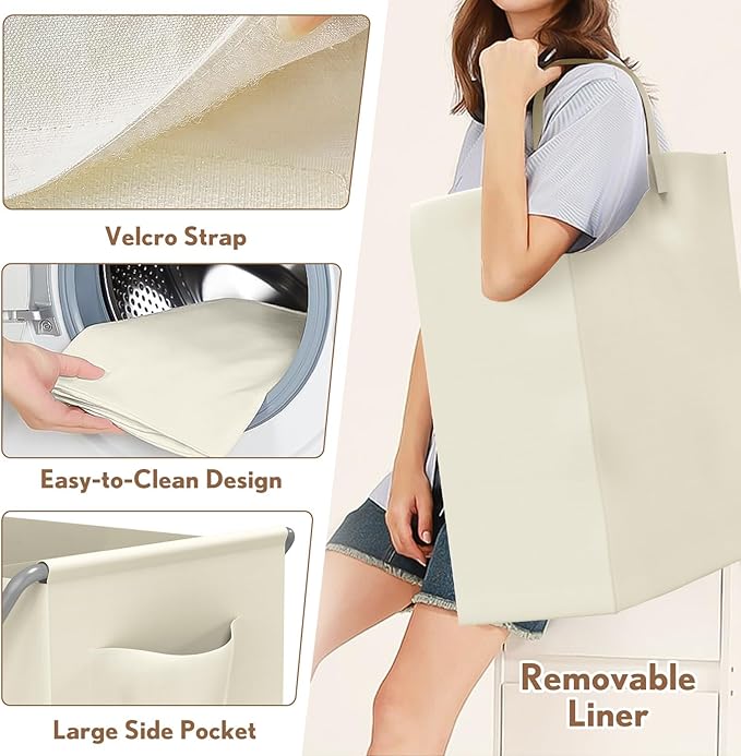 - Removable and Secure Liner: Removable and washable lining are very popular, making it convenient for users to clean the inside of the laundry basket and maintain hygiene. Easily detach the liner bag from the laundry trolley and carry it downstairs using the convenient handles.