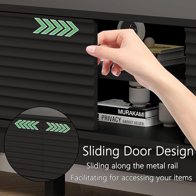 - 【Chic Appearance】The unique wave-like fluted doors match the natural surface, this TV stand with storage blend of midcentury modern and boho that adds a cozy stylish touch to your space. Whether you are in a dorm room, apartment or house, this TV cabinet can add novelties and charm to your house and make your home feel more like home