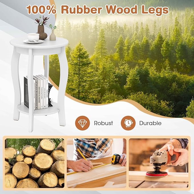 - [Sturdy & Stable Construction]: 100% rubber wood legs make this circle side table robust, durable and stable, providing a strong weight capacity up to 200 lbs. Moreover, the non-slip foot pads were equipped for added stability while protecting your beloved floor from scratches.