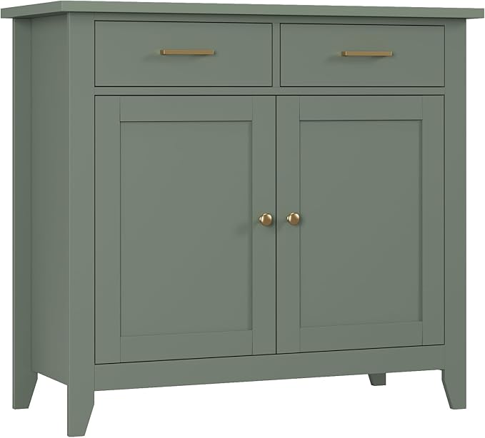 HORSTORS Kitchen Storage Cabinet, Modern Farmhouse Buffet Cabinet with Storage, Coffee Bar with 2 Drawers and 2 Doors, Floor Sideboard Buffet for Living Room, Dining Room, Bathroom, Green