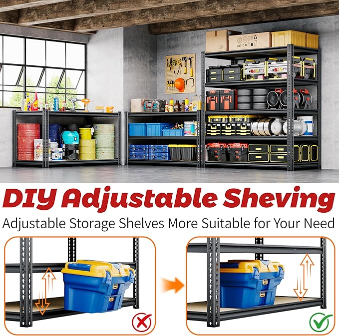 - Special Feature : 5 Tier Storage Shelves, Adjustable, Garage Shelving, Heavy Duty Shelving