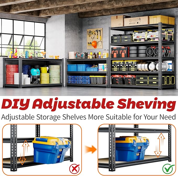 - Special Feature : 5 Tier Storage Shelves, Adjustable, Garage Shelving, Heavy Duty Shelving