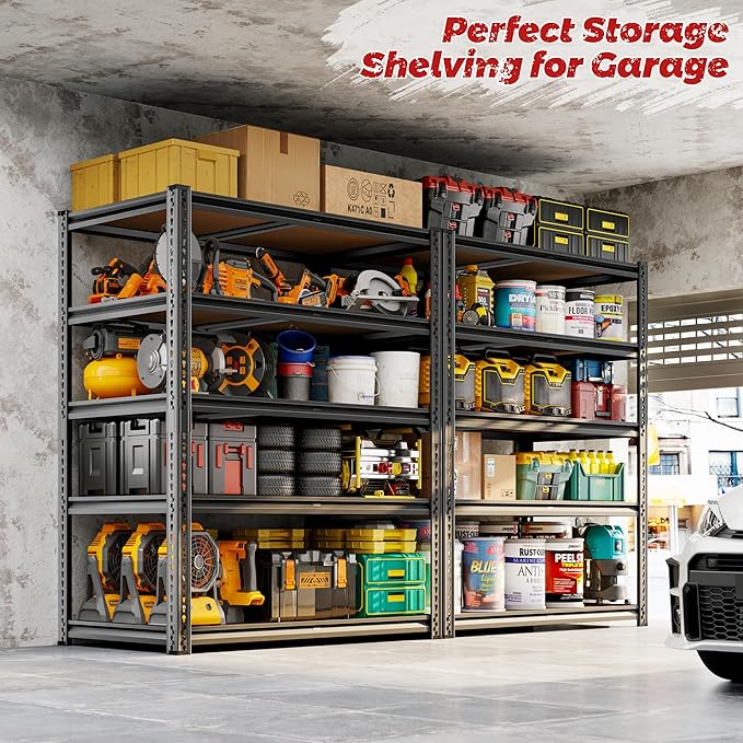 - 【Safety Rolled Edges & Ultra-Durable Design】 The upgraded storage shelves heavy duty features thickened uprights with smooth rolled edges, enhancing load-bearing capacity and stability while effectively preventing hand injuries. Crafted from high-strength premium cold-rolled steel and finished with advanced powder